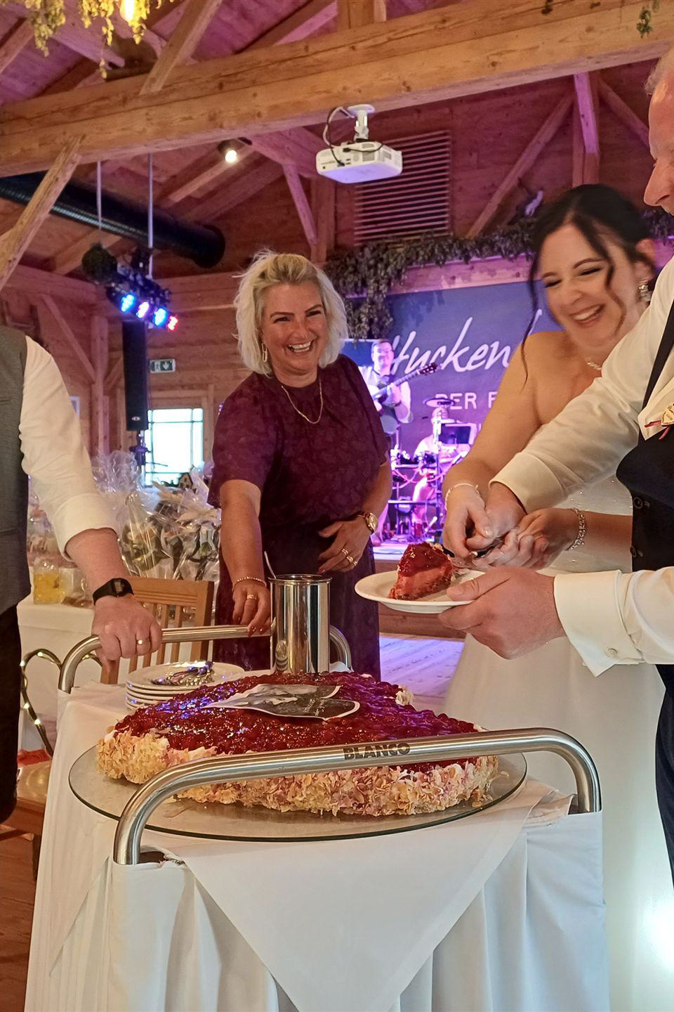...essen: Schweinsbradl, lange italienische Nudeln, Kuchenbuffet